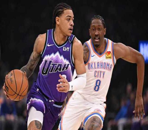 雷霆过去两场连输太阳与黄蜂遭遇2连败,尤其是主场97-124惨负黄蜂,爵士过去4场遭遇4连败,本赛季前两次交锋雷霆均客场大胜爵士。本场雷霆缺少哈尔滕施泰因、卡鲁索与吉昂,爵士缺少乐福、尼昂与凯斯勒。首节前5分钟双方持续交替领先,雷霆在11-12落后情况下连得6分,雷霆之后维持25-20领先优势。科利尔中投追分,雷霆一波6-0攻势拉开比分,首节结束雷霆31-22领先爵士。首节雷霆20中11,其中三分8中3,亚历山大4中3得到10+2+3;爵士被限制26中6,其中三分11中2。