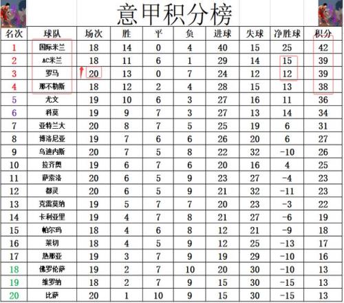 意甲最新积分战报罗马2连胜超过尤文追上AC米兰升至第3
