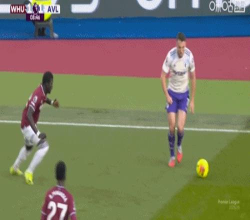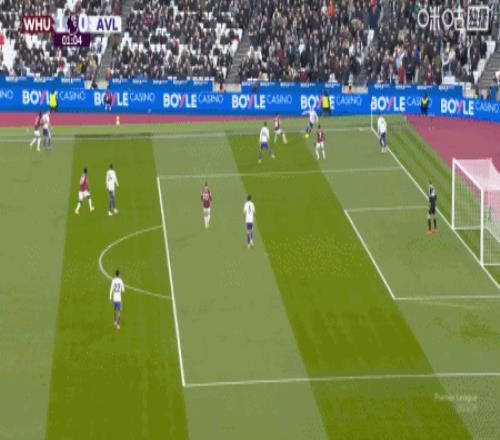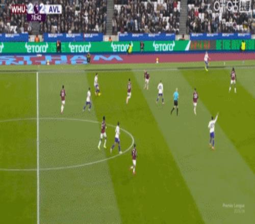 第24分钟,波茨助攻,鲍恩门前点射破门,西汉姆联2-1维拉