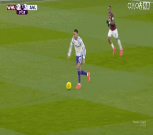 第50分钟,蒂勒曼斯传中,罗杰斯停球射门一气呵成,维拉2-2西汉姆联