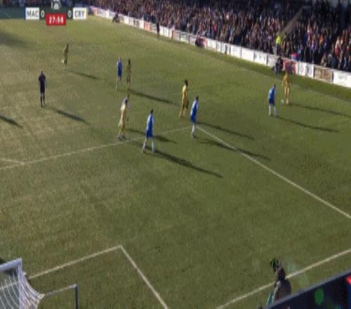 第43分钟,道森抢点破门,麦克斯菲尔德1-0领先卫冕冠军水晶宫!