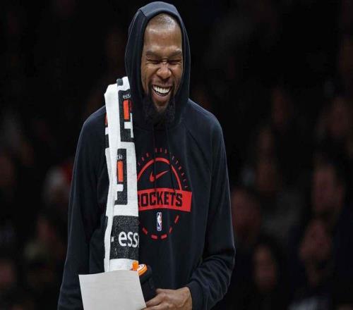 火箭队杜兰特被沃尔夫的离谱投篮击中面部后,当场忍不住吐槽起来